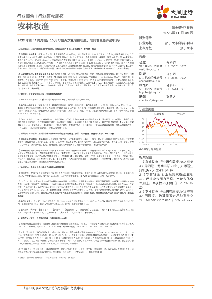天风证券:农林牧渔2023年第44周周报:10月母猪淘汰量增幅明显,如何看生猪养殖板块?.pdf