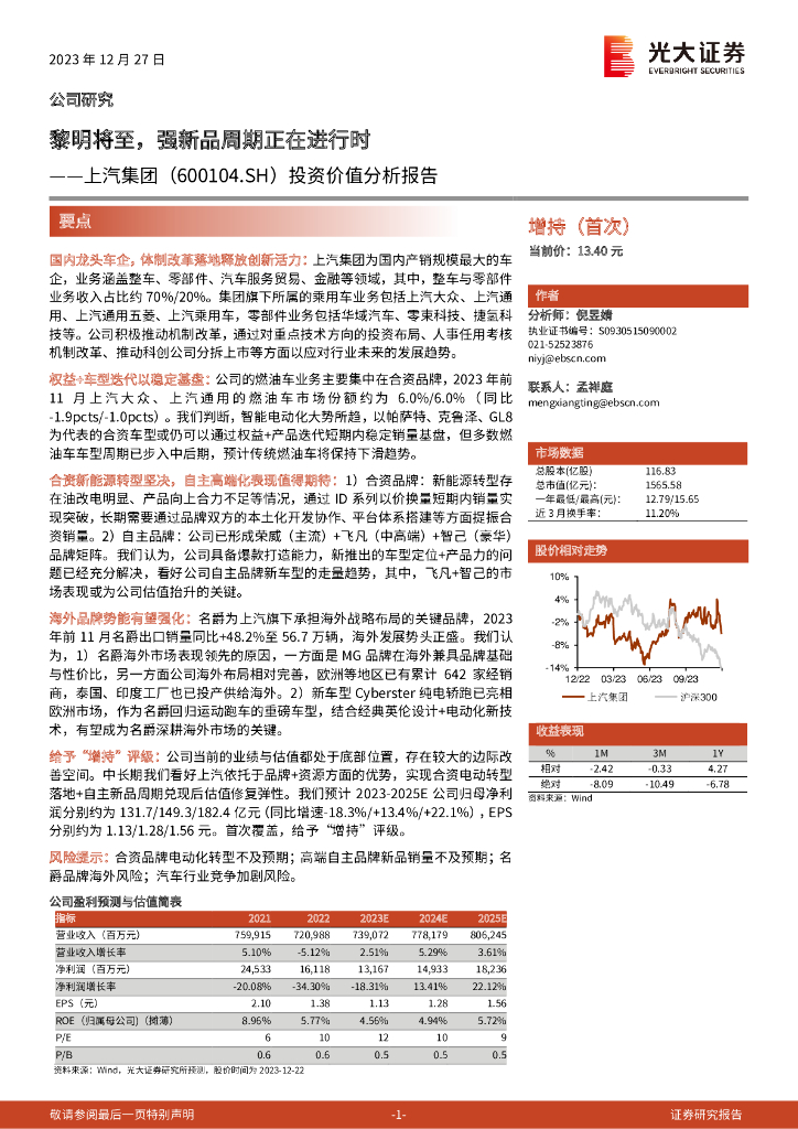 光大证券:黎明将至,强新品周期正在进行时——上汽集团(600104.SH)投资价值分析报告.pdf