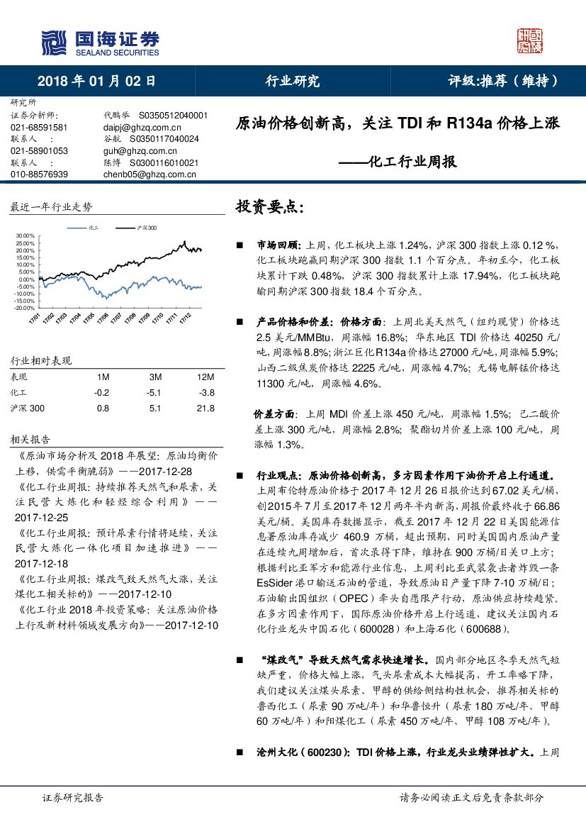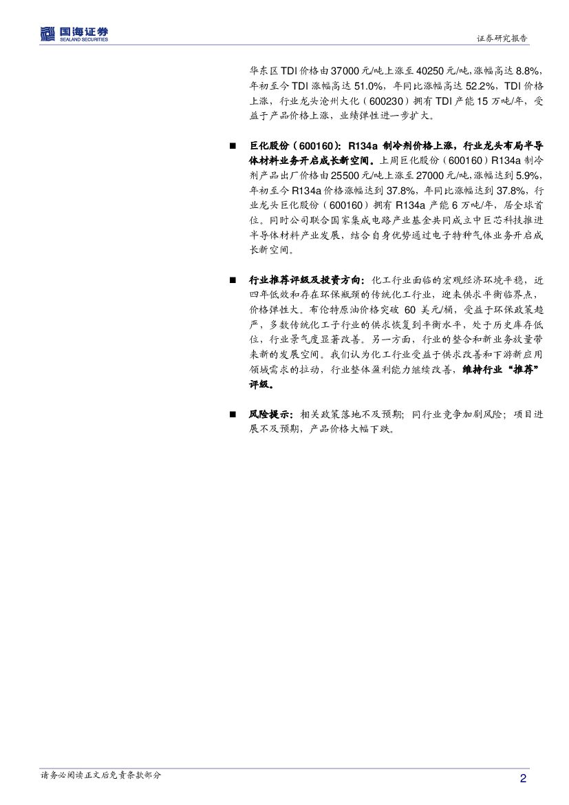 国海证券:化工行业周报:原油价格创新高,关注TDI和R134a价格上涨.pdf