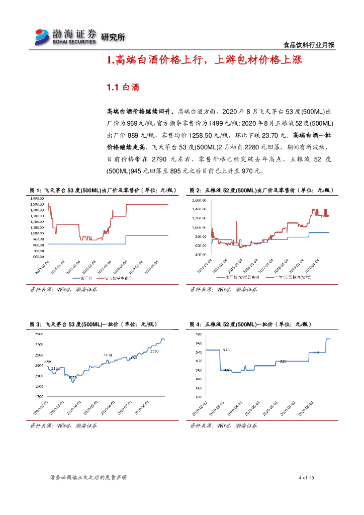 渤海证券:食品饮料行业月报:高端白酒批价继续上行 成本环境面临一定压力.pdf