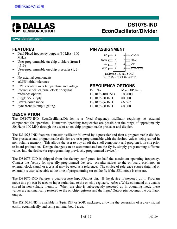 DALLAS DS1075-IND EconOscillator/Divider 技术手册.pdf