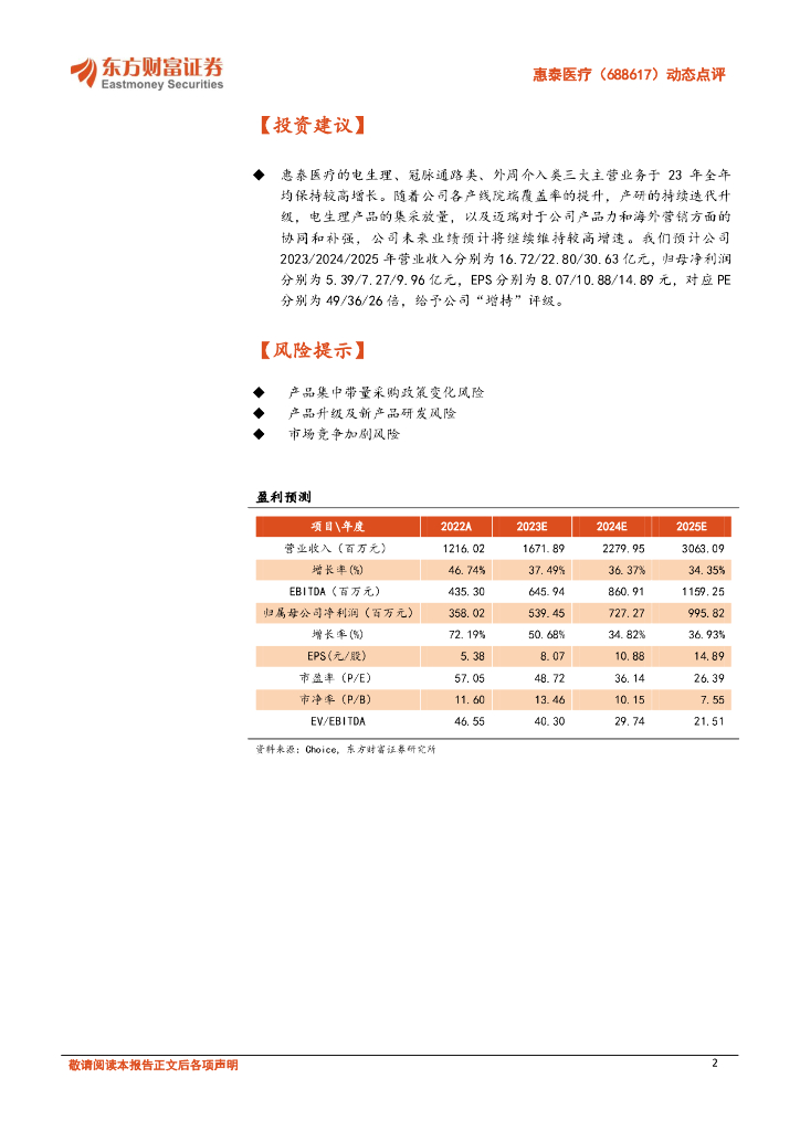 东方财富证券:惠泰医疗(688617)-动态点评:迈瑞联手,企稳血管介入国产领先地位.pdf