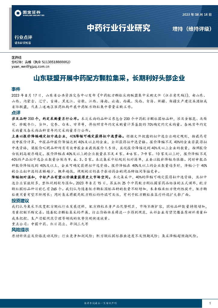 国金证券:中药行业行业研究:山东联盟开展中药配方颗粒集采,长期利好头部企业.pdf