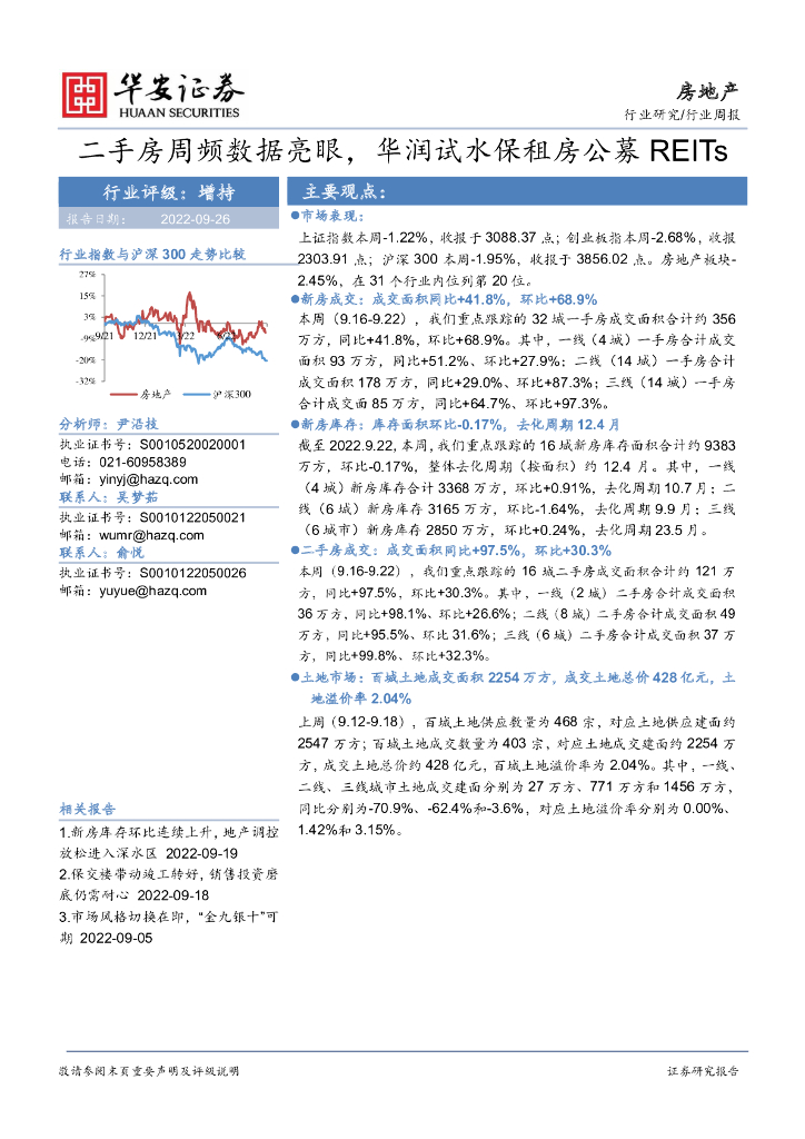 华安证券:房地产行业周报:二手房周频数据亮眼,华润试水保租房公募REITs.pdf