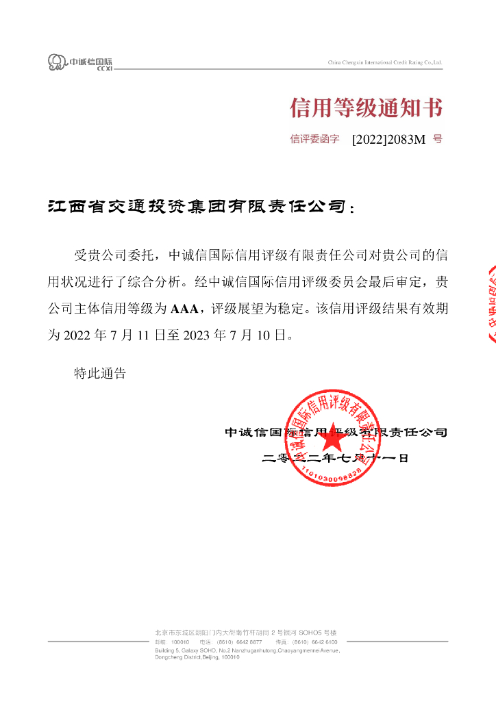 中诚信:江西省交通投资集团有限责任公司2022年度主体评级报告.pdf