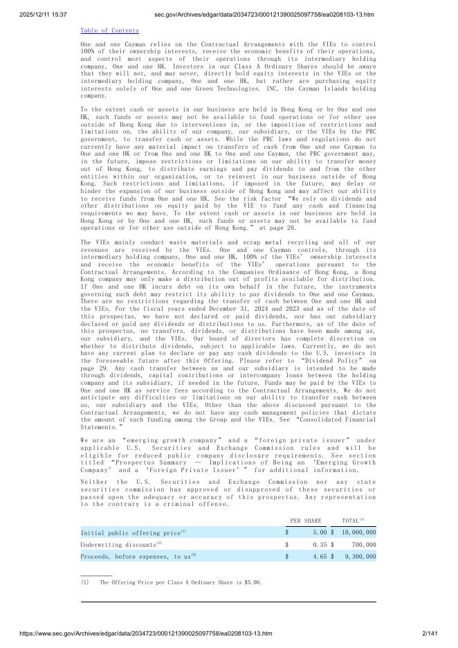 One and one Green Technologies. Inc美股纳斯达克IPO上市招股说明书.pdf