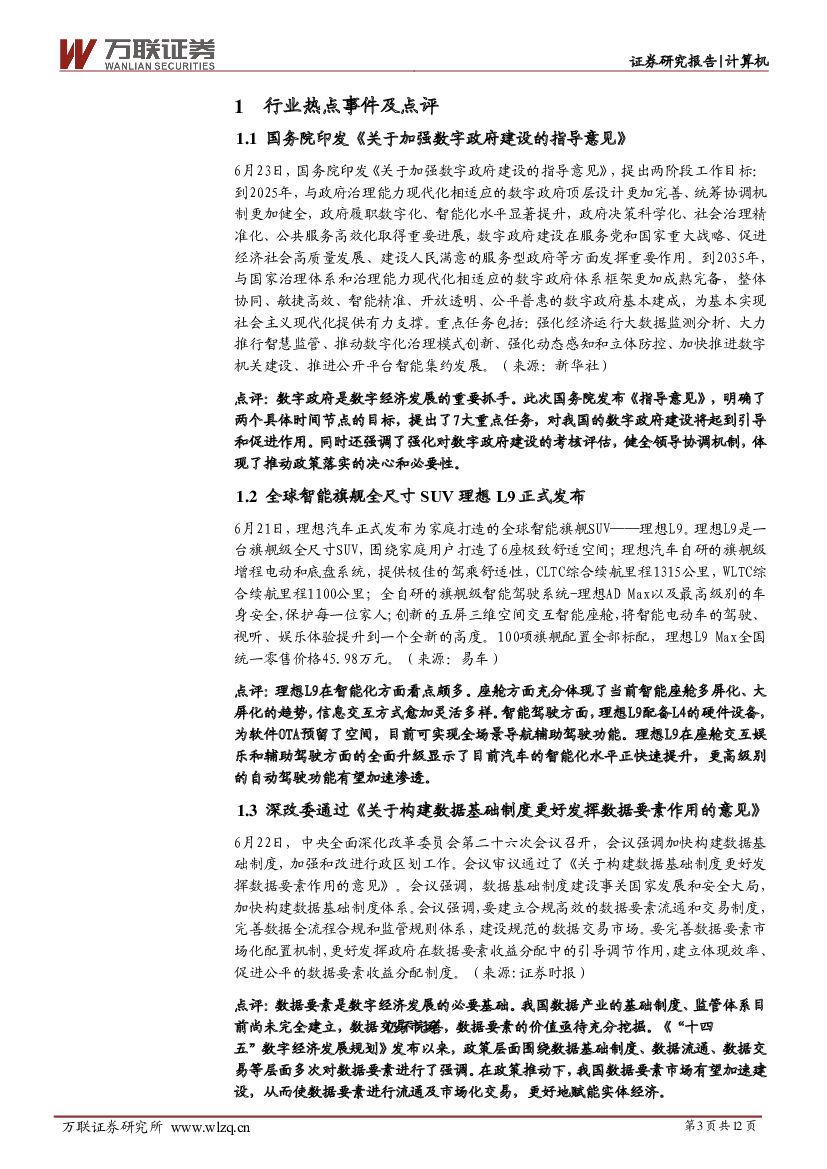 万联证券:计算机行业周观点:数字政府建设指导意见下发,理想L9发布.pdf