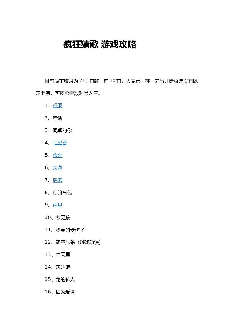 疯狂猜歌游戏攻略以及答案2022.doc