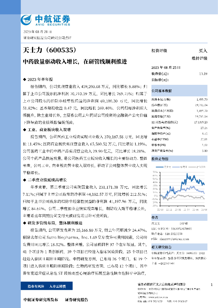 中航证券:天士力(600535)-中药放量驱动收入增长,在研管线顺利推进.pdf