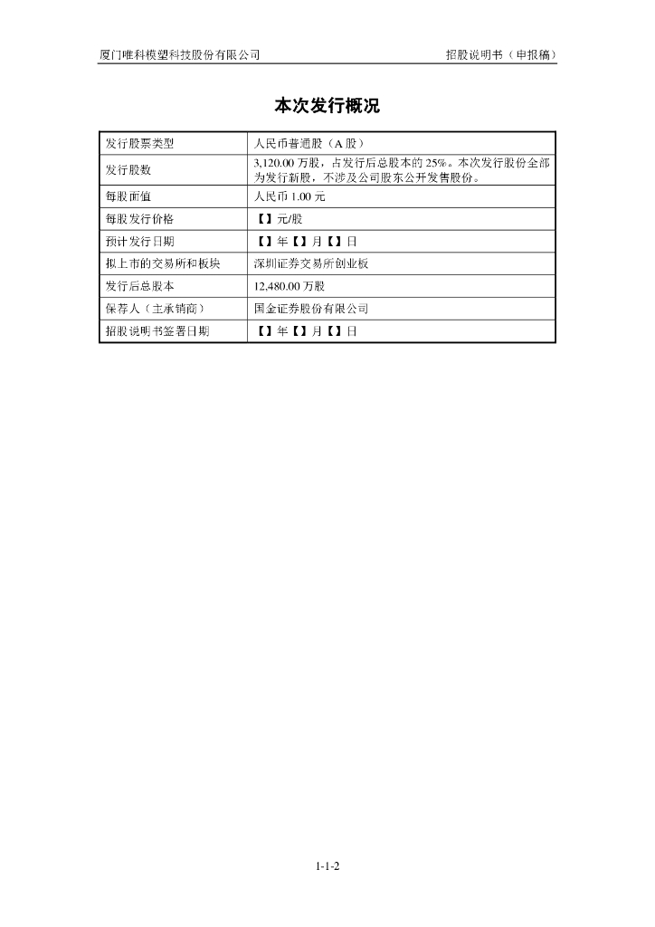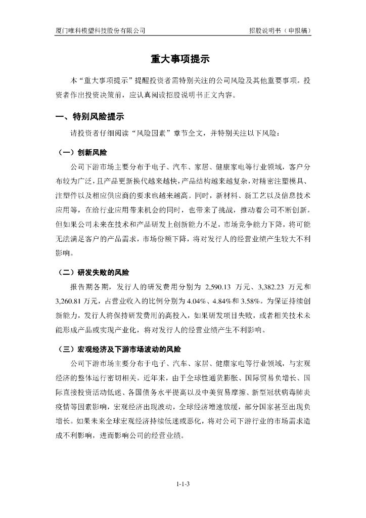 厦门唯科模塑科技股份有限公司深交所创业板IPO上市招股说明书.pdf