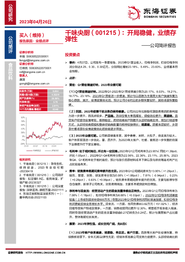 东海证券:千味央厨(001215)-公司简评报告:开局稳健,业绩存弹性.pdf