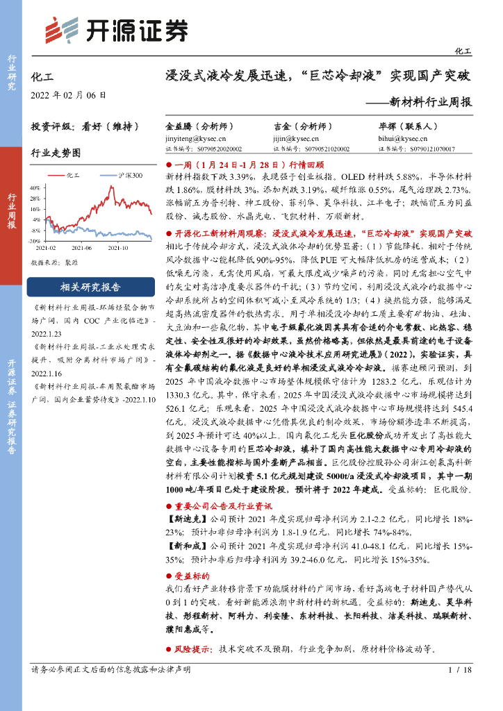 开源证券:新材料行业周报:浸没式液冷发展迅速,“巨芯冷却液”实现国产突破.pdf