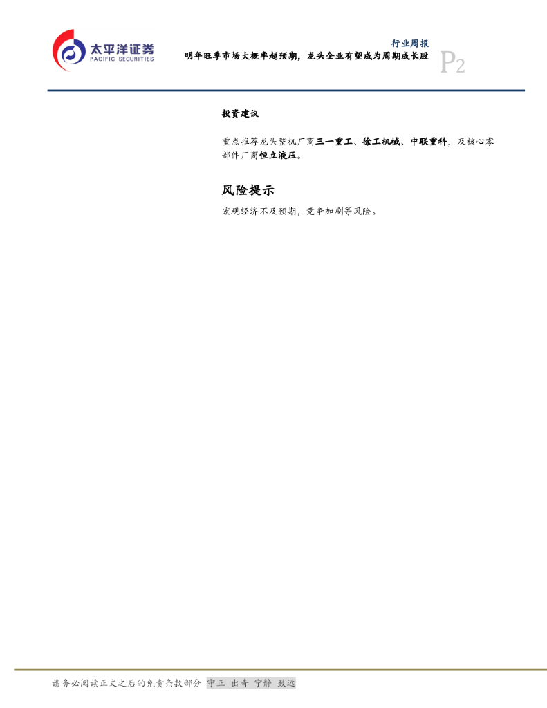 太平洋证券:机械行业周报:明年旺季市场大概率超预期,龙头企业有望成为周期成长股.pdf
