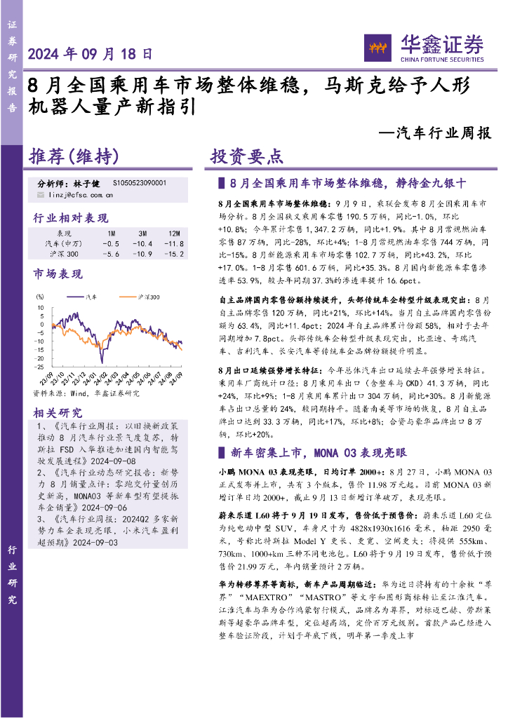 华鑫证券:汽车行业周报:8月全国乘用车市场整体维稳,马斯克给予人形机器人量产新指引.pdf