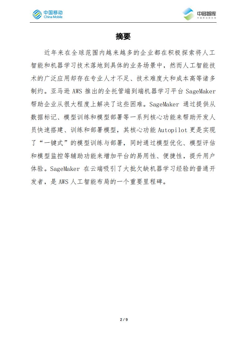 中国移动研究院:亚马逊AWS Sagemaker机器学习平台研究.pdf
