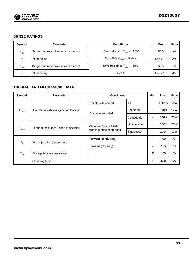 DYNEX DS2106SY Rectifier Diode 数据手册.pdf