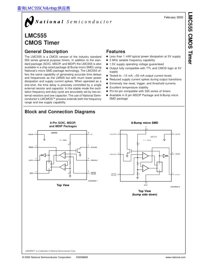 National Semiconductor   LMC555 CMOS Timer 数据手册.pdf