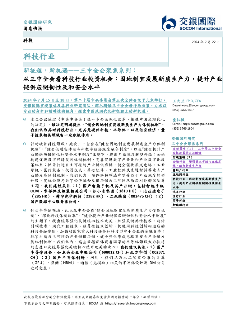 交银国际证券:科技行业:新征程,新机遇——三中全会聚焦系列:从三中全会看科技行业投资机会:因地制宜发展新质生产力,提升产业链供应链韧性及和安全水平.pdf