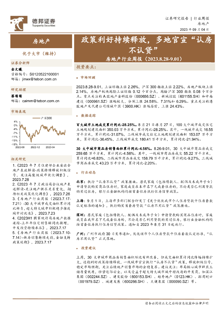 德邦证券:房地产行业周报:政策利好持续释放,多地官宣“认房不认贷”.pdf
