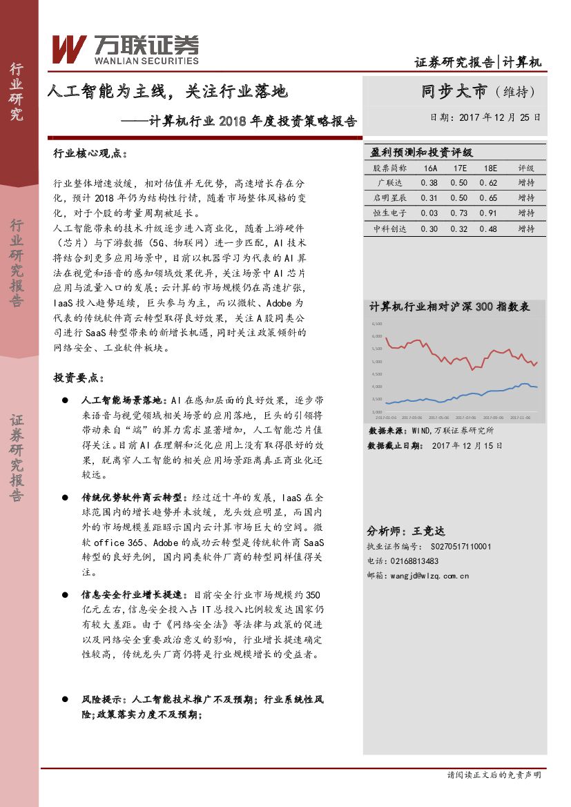万联证券:计算机行业2018年度投资策略报告:人工智能为主线,关注行业落地.pdf