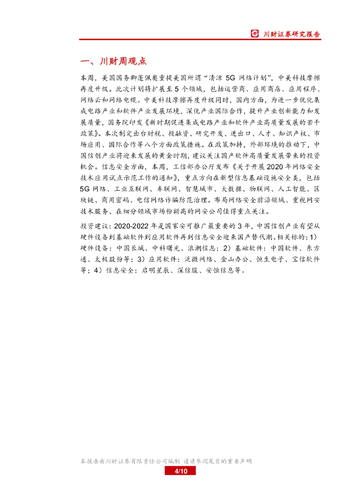 川财证券:信创行业周报:中美科技摩擦升级,关注国产软件高质量发展.pdf