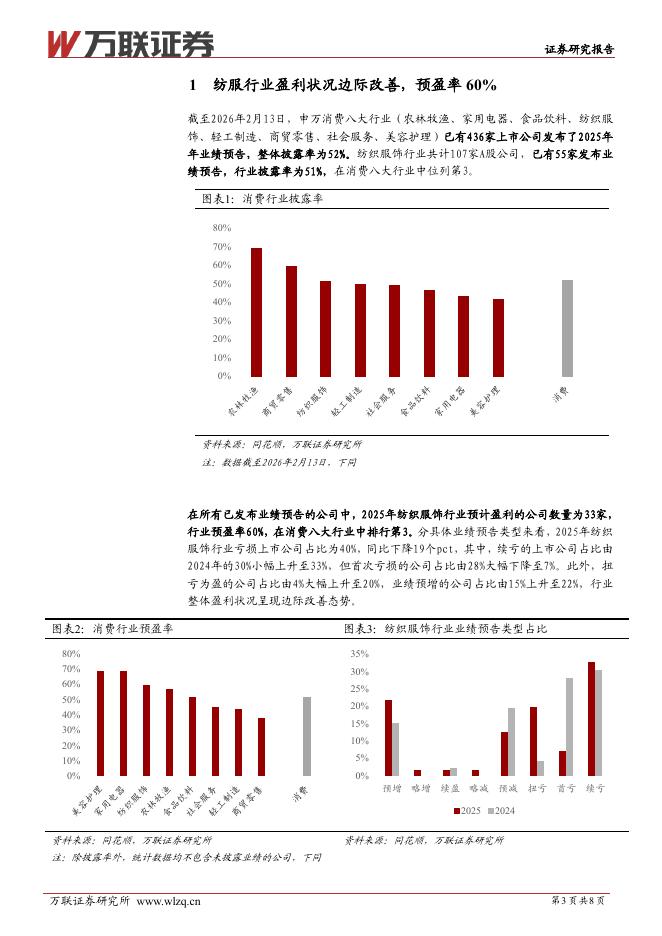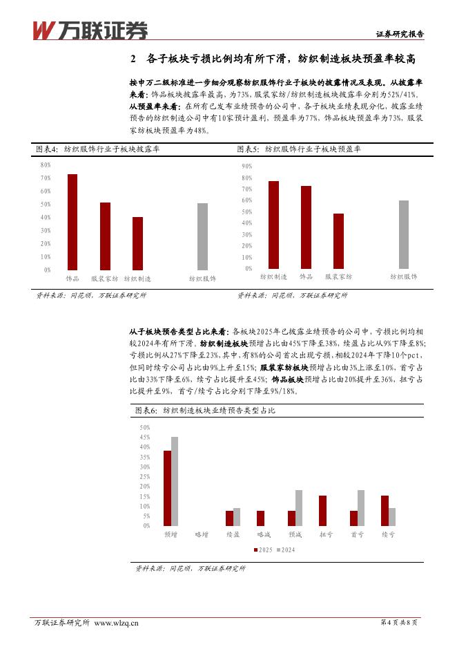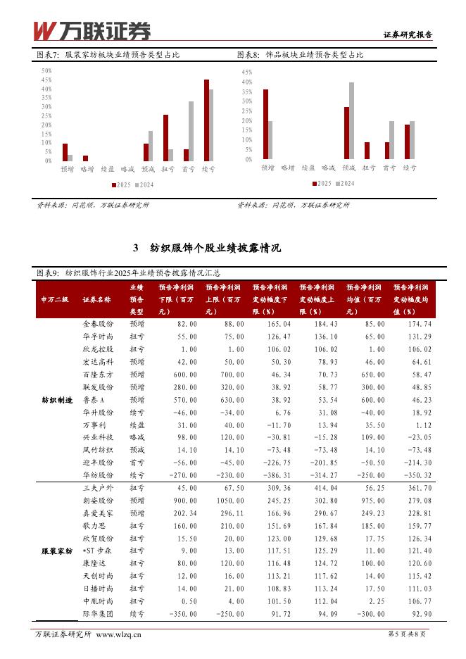 万联证券:纺织服饰行业2025年业绩预告综述:行业整体盈利状况边际改善,纺织制造板块预盈率较高.pdf