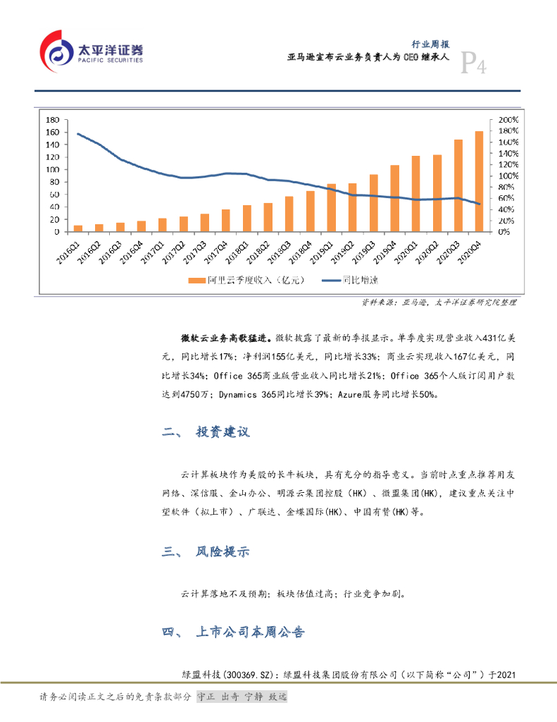 太平洋证券:信息行业周报:亚马逊宣布云业务负责人为CEO继承人.pdf