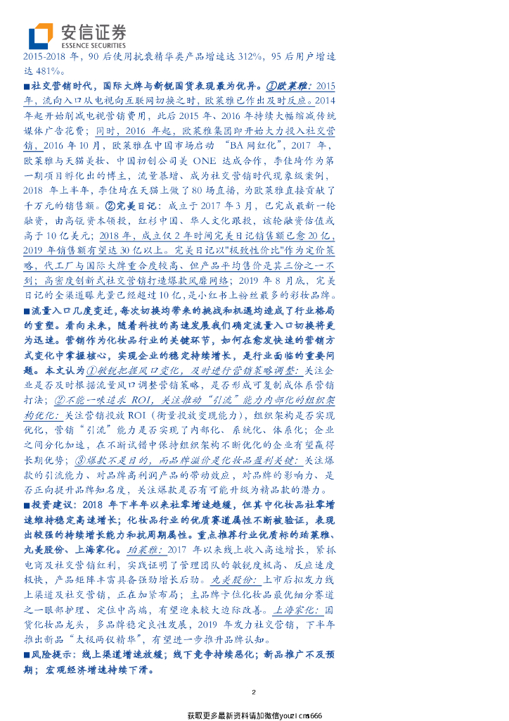 安信证券:商贸零售行业:聚散之间,看化妆品营销新纪元_写在社交营销序幕拉开的关键时期.pdf
