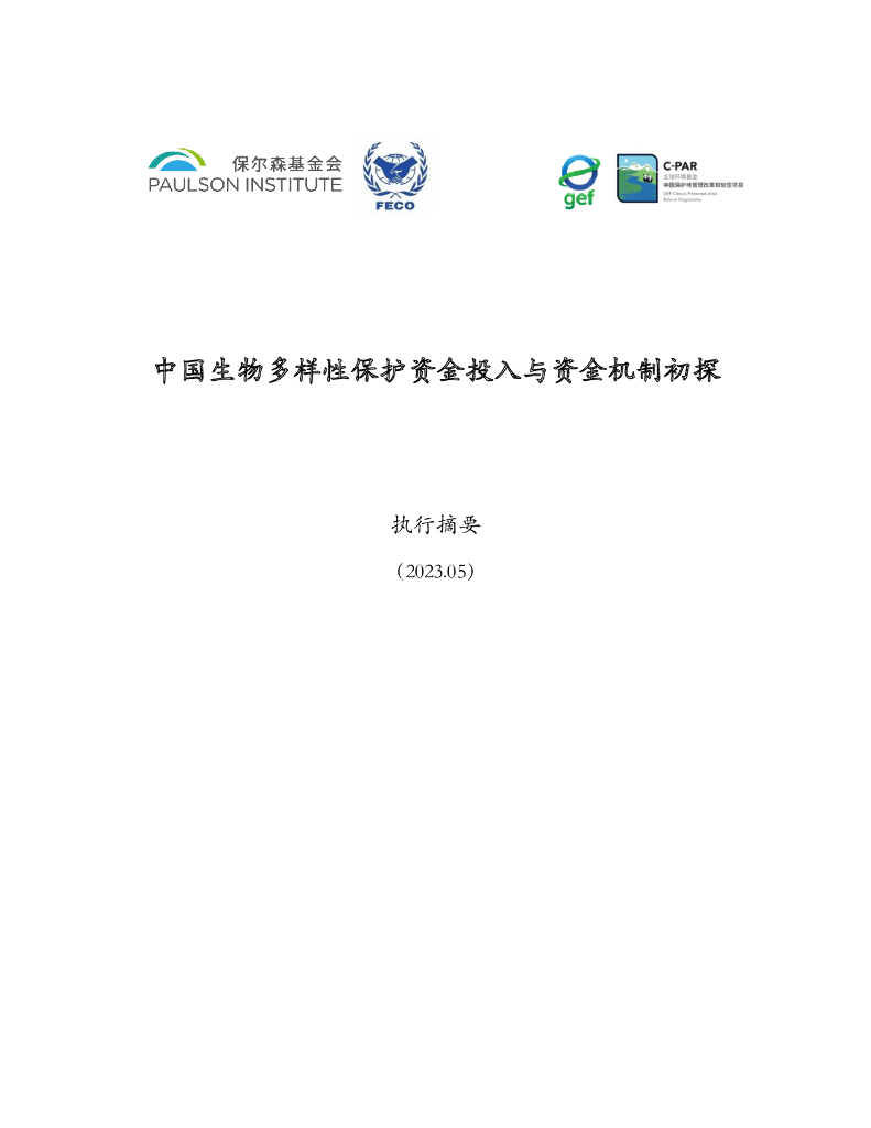 保尔森基金会:2023中国生物多样性保护资金投入与资金机制初探执行摘要.pdf