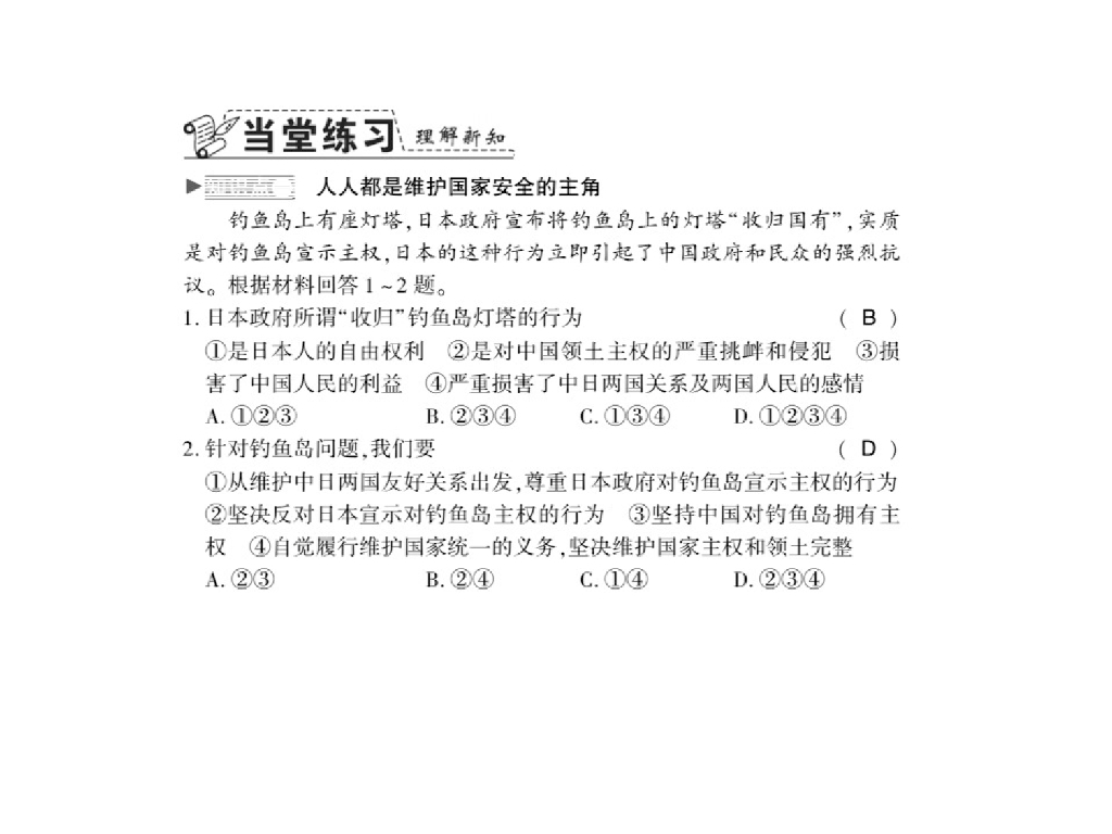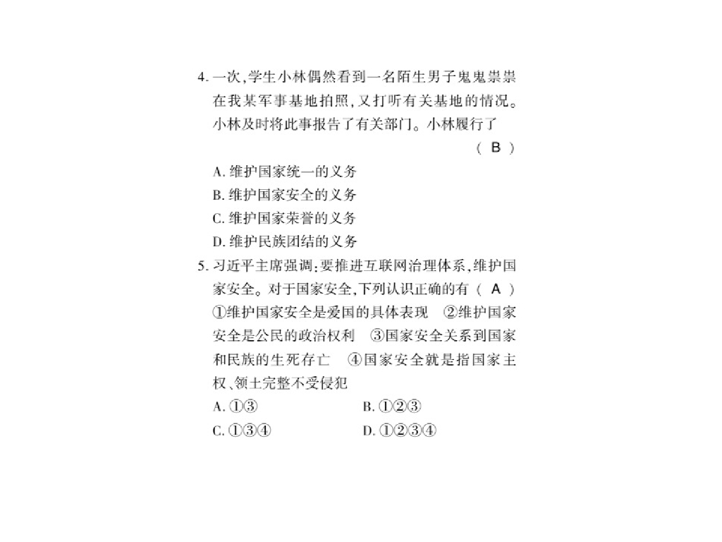 2021人教版八年级道德与法治上册习题课件:第九课第二框 维护国家安全.ppt