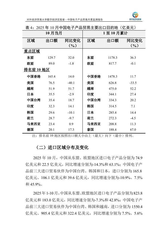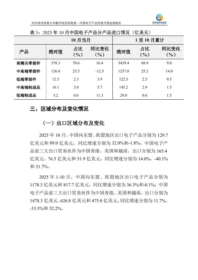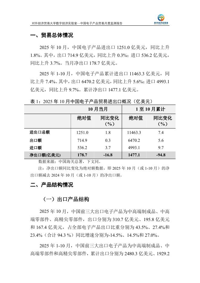 对外经济贸易大学:中国电子产品贸易月度监测报告(2025年1-10月).pdf