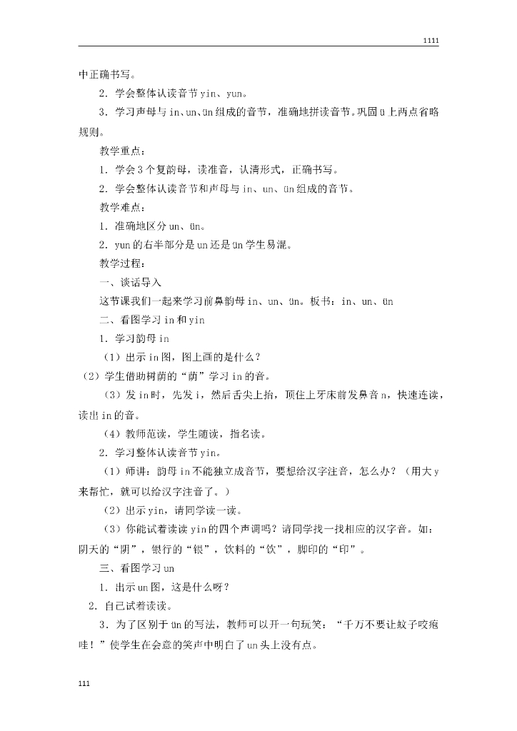 一年级语文(教案3)12 an en in un ün教学设计.doc