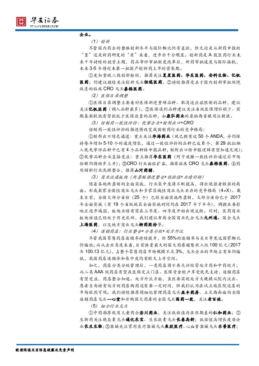 华安证券:医药生物行业2018年中期策略:创新为本,精选优质龙头.pdf