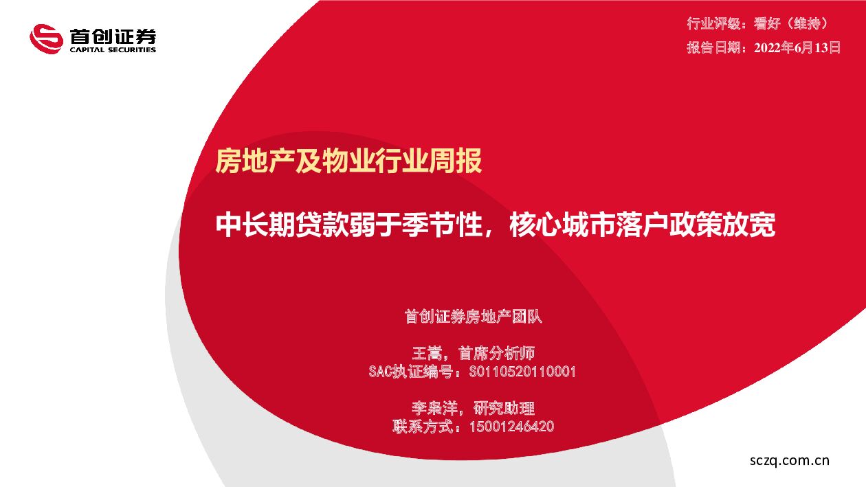首创证券:房地产及物业行业周报:中长期贷款弱于季节性,核心城市落户政策放宽.pdf