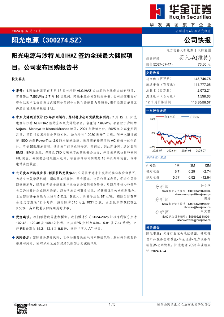 华金证券:阳光电源与沙特ALGIHAZ签约全球最大储能项目,公司发布回购报告书.pdf