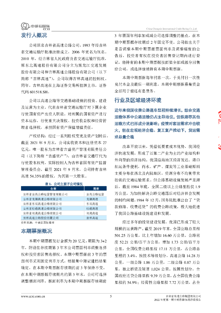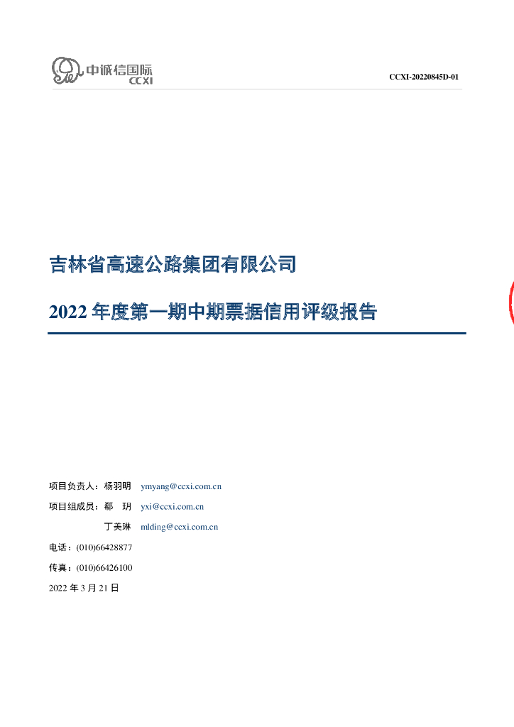 中诚信:吉林省高速公路集团有限公司2022年度第一期中期票据信用评级报告.pdf
