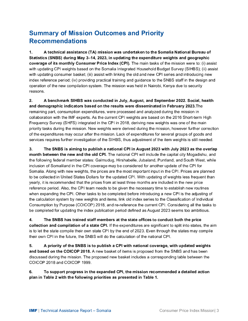 国际货币基金组织:索马里技术援助报告-消费者价格指数特派团(2023年5月3日至14日)(英文版).pdf