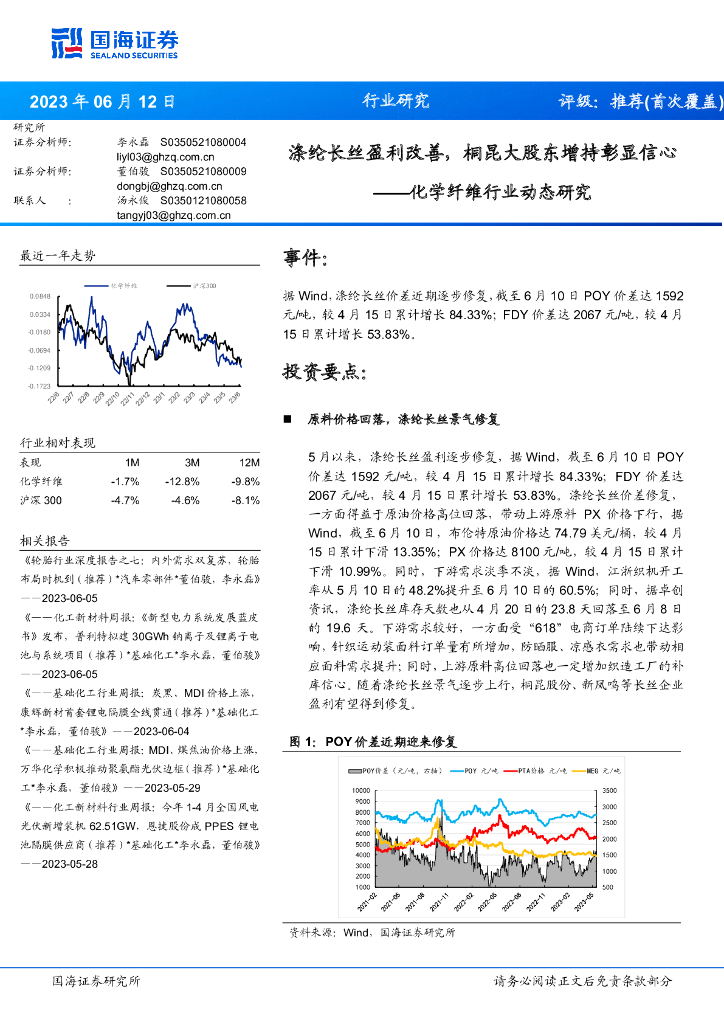 国海证券:化学纤维行业动态研究:涤纶长丝盈利改善,桐昆大股东增持彰显信心.pdf