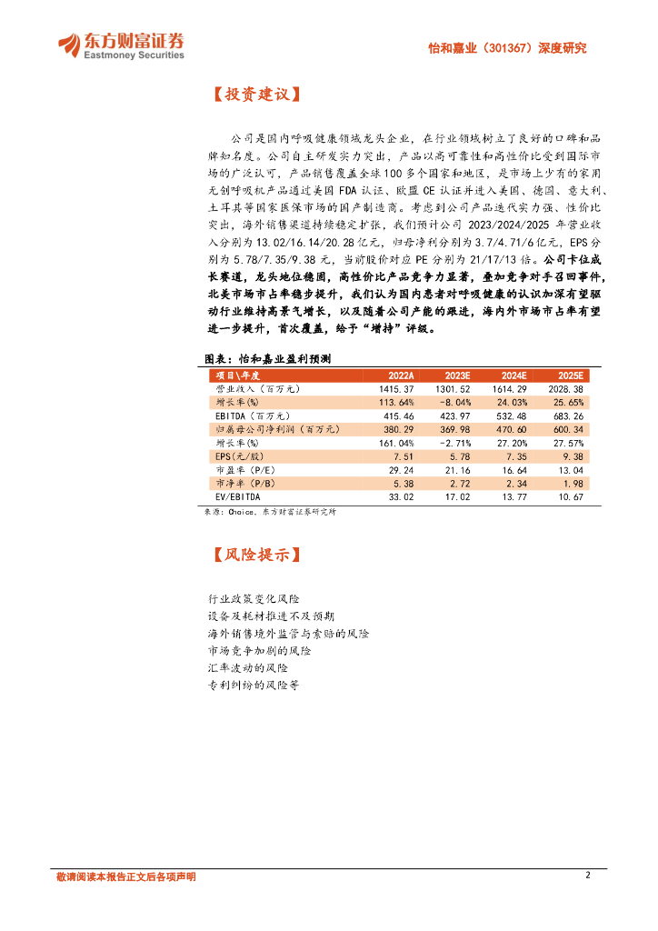 东方财富证券:怡和嘉业(301367)-深度研究:国产家用呼吸机龙头,卓越品质树立出口标杆.pdf