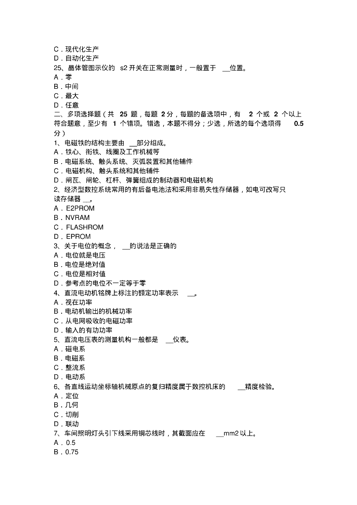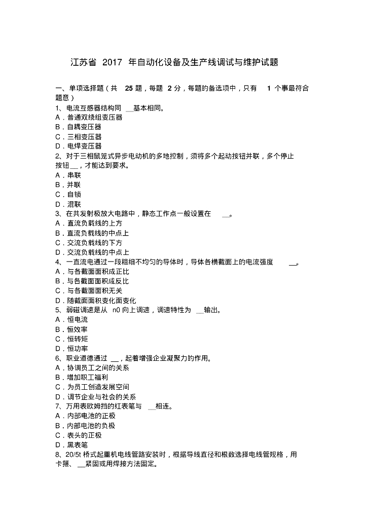 江苏省2017年自动化设备及生产线调试与维护试题.pdf