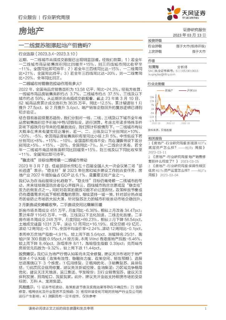 天风证券:房地产行业研究周报:一二线复苏能撑起地产销售吗?.pdf