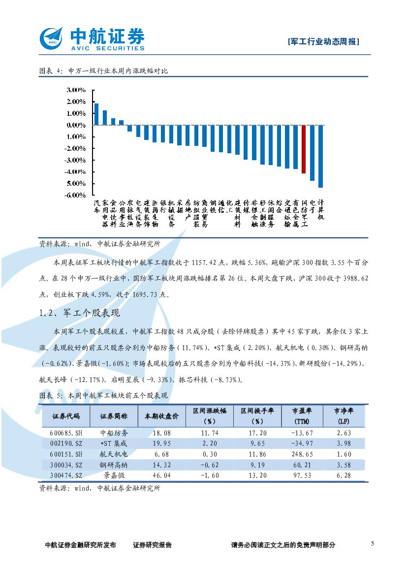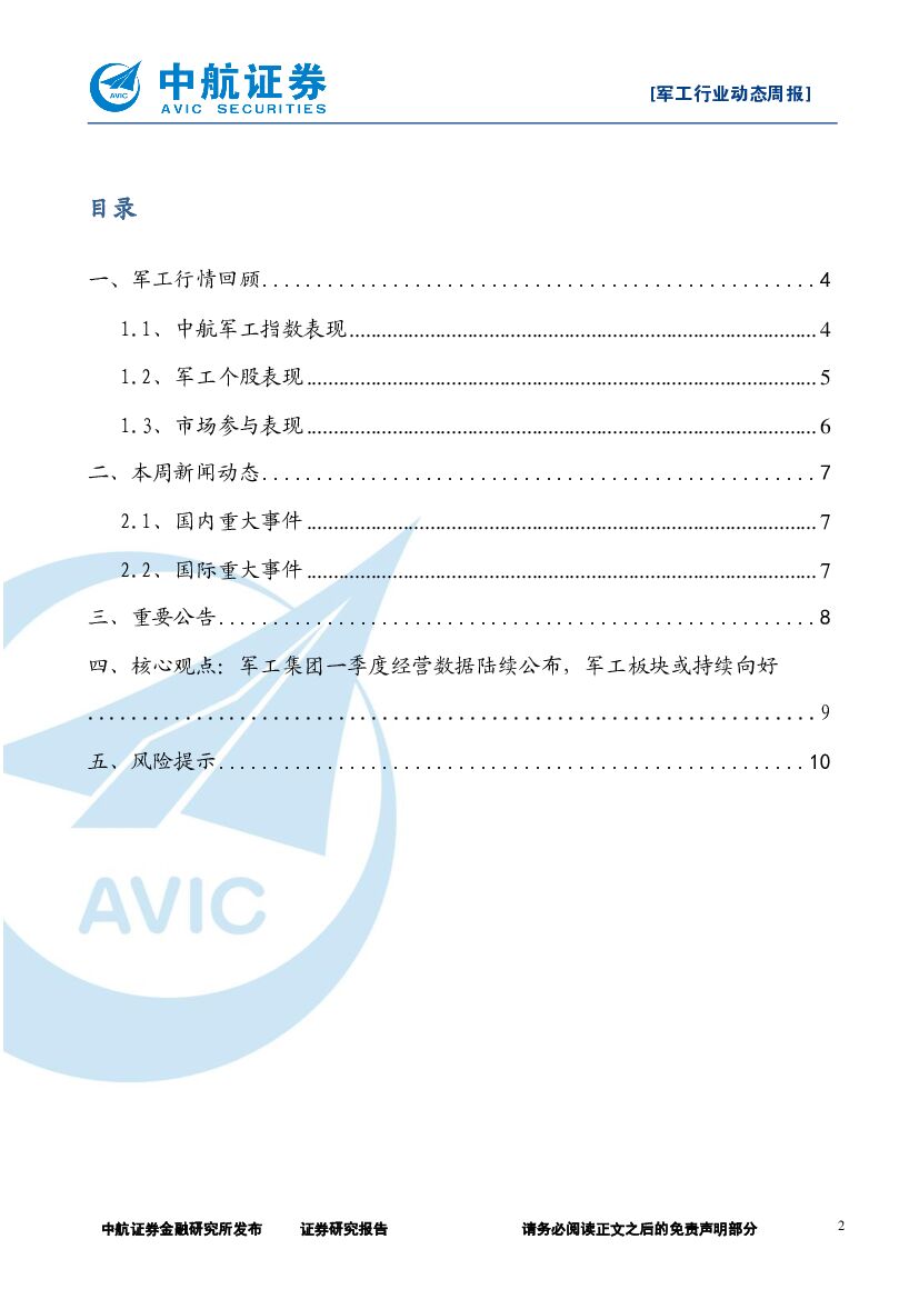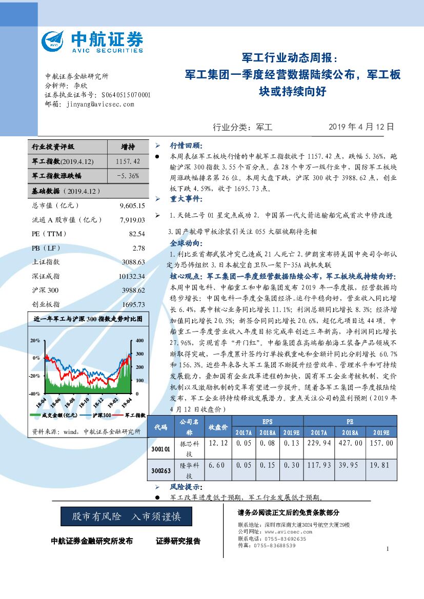 中航证券:军工行业动态周报:军工集团一季度经营数据陆续公布,军工板块或持续向好.pdf