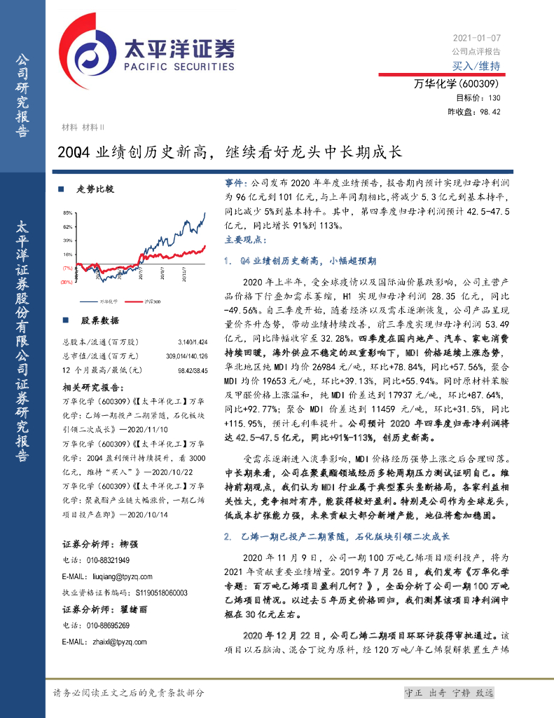 太平洋证券:万华化学(600309)-20Q4业绩创历史新高,继续看好龙头中长期成长.pdf