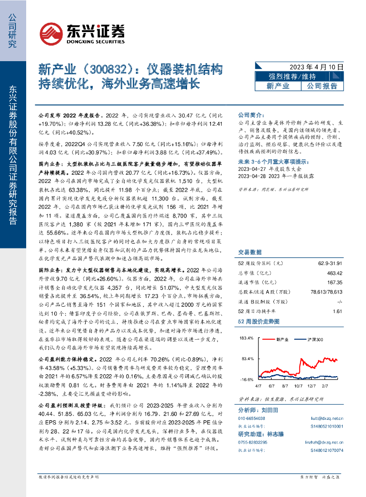 东兴证券:新产业(300832)-仪器装机结构持续优化,海外业务高速增长.pdf