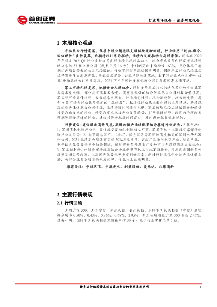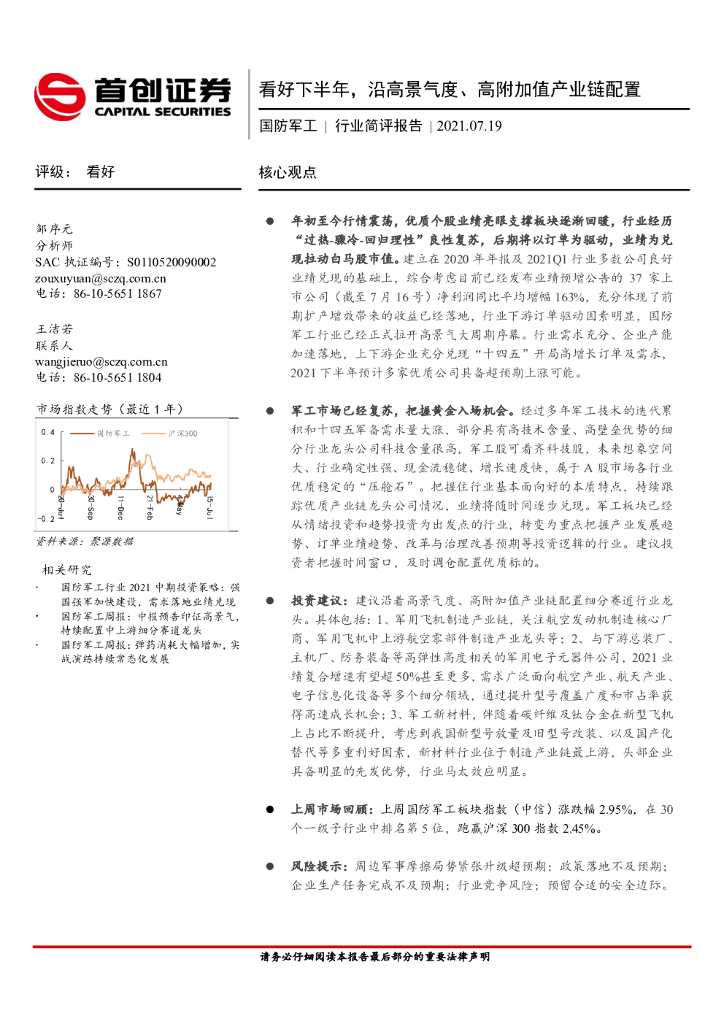 首创证券:国防军工行业简评报告:看好下半年,沿高景气度、高附加值产业链配置.pdf