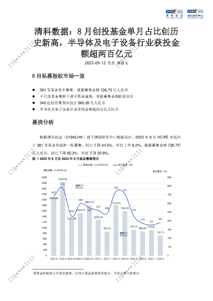 清科数据:8月创投基金单月占比创历史新高,半导体及电子设备行业获投金额超两百亿元.pdf