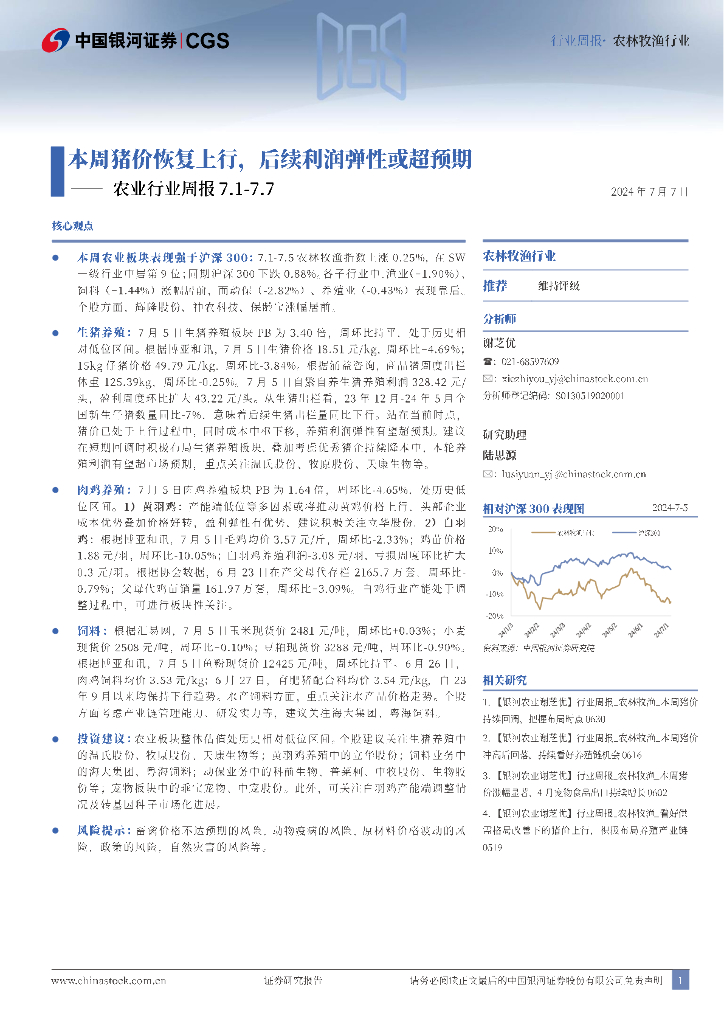 中国银河:农业行业周报:本周猪价恢复上行,后续利润弹性或超预期.pdf