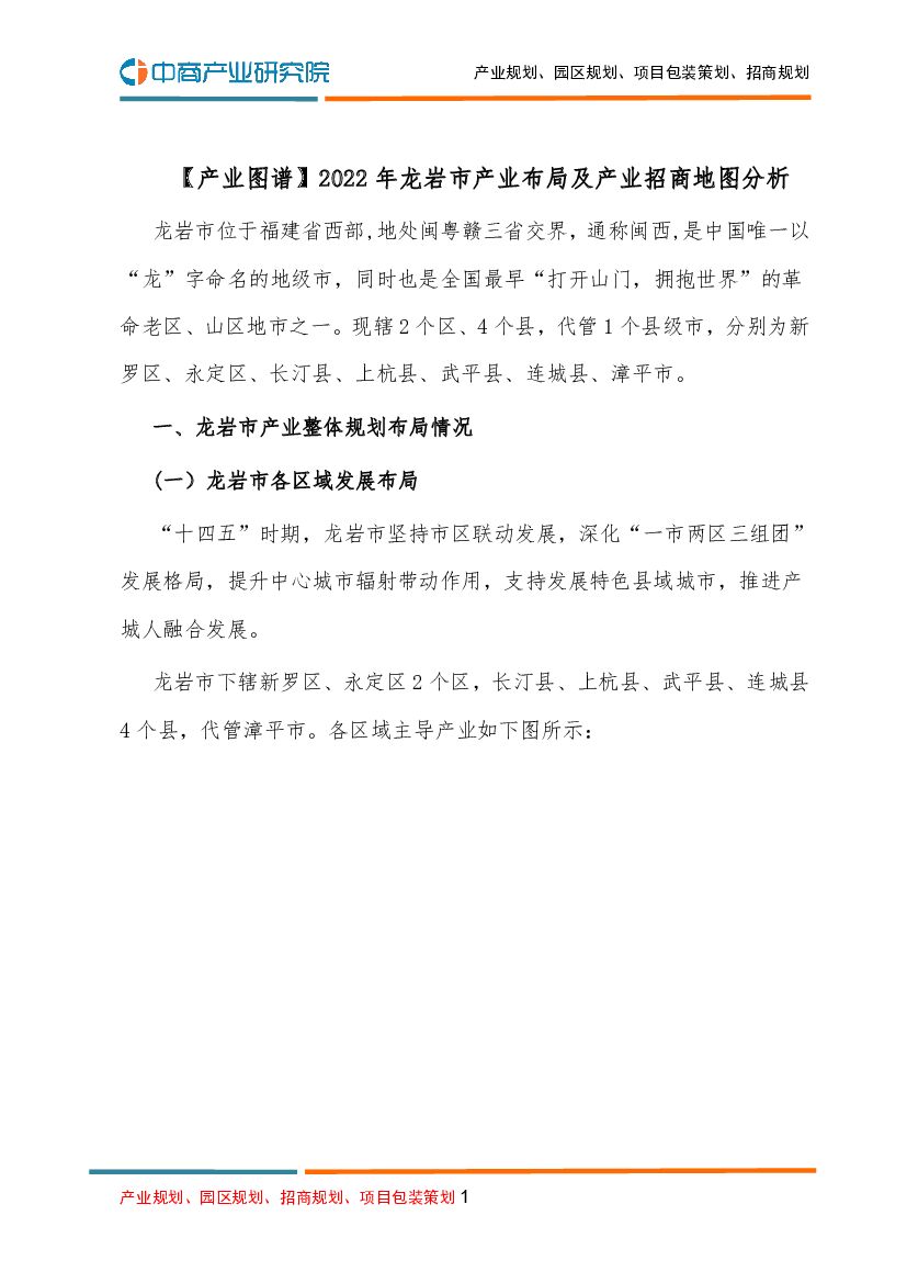 2022年龙岩市产业布局及产业招商地图分析.pdf