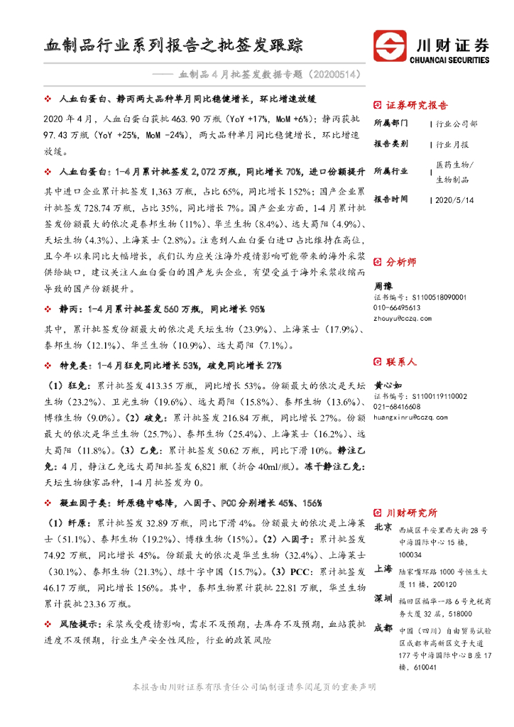 川财证券:血制品4月批签发数据专题:血制品行业系列报告之批签发跟踪.pdf