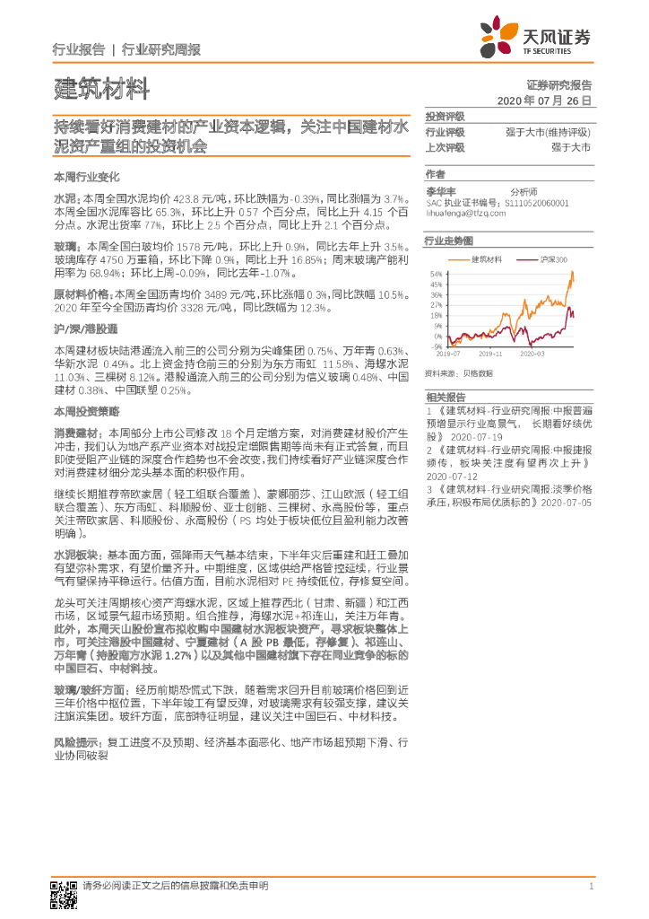 天风证券:建筑材料行业研究周报:持续看好消费建材的产业资本逻辑,关注中国建材水泥资产重组的投资机会.pdf